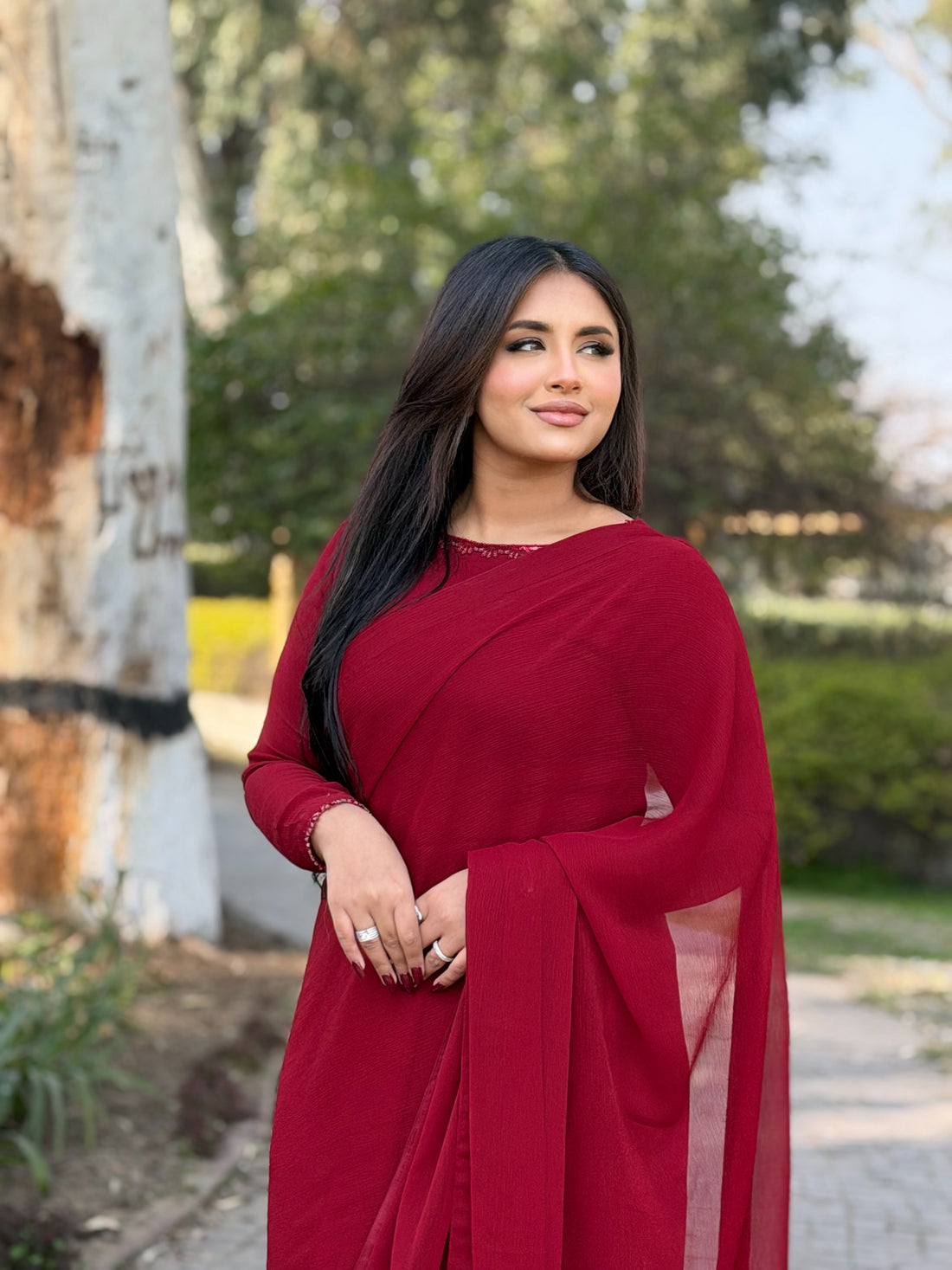 Step into timeless elegance with our Elegant Crimson Red Chiffon Dress, designed for women who...
