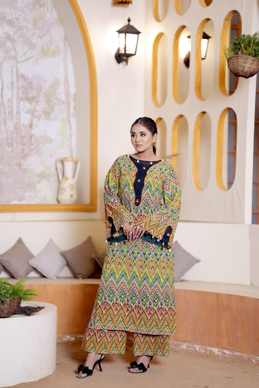Bring life to your style with the Rainbow Aura Colourful Dress, designed with vibrant hues that celebrate individuality and confidence. The premium-quality fabric ensures comfort while maintaining a luxurious feel, making it perfect for functions, gatherings, and statement looks.