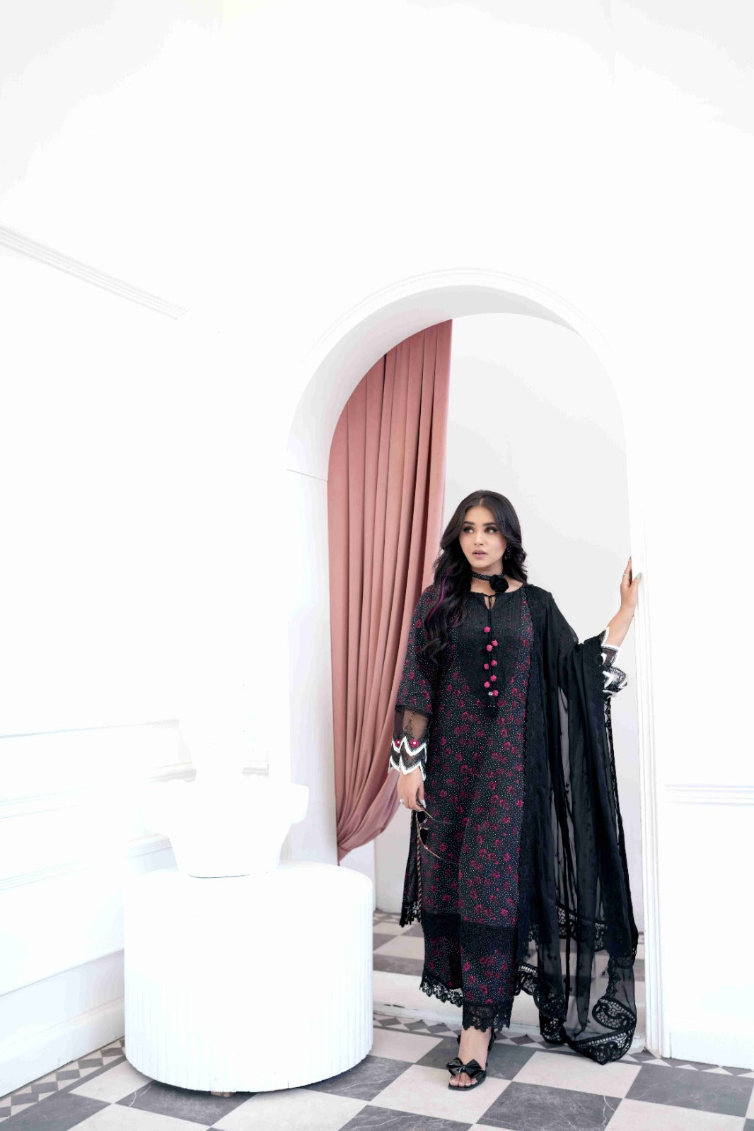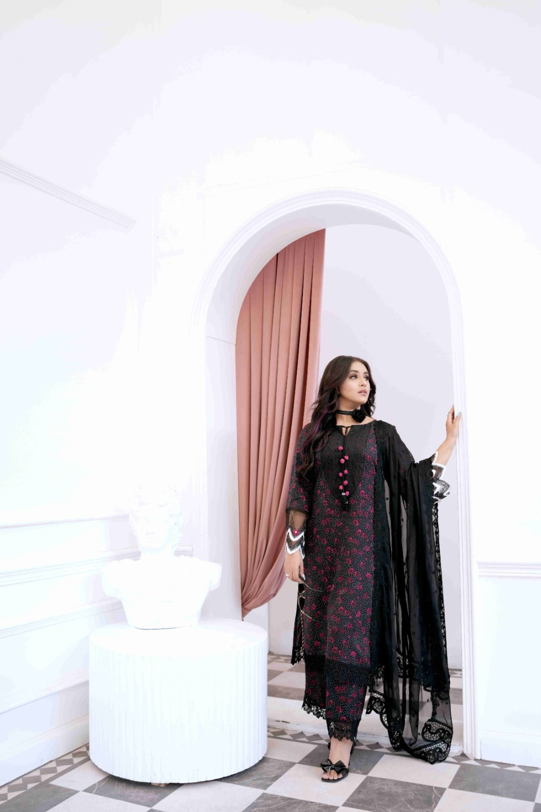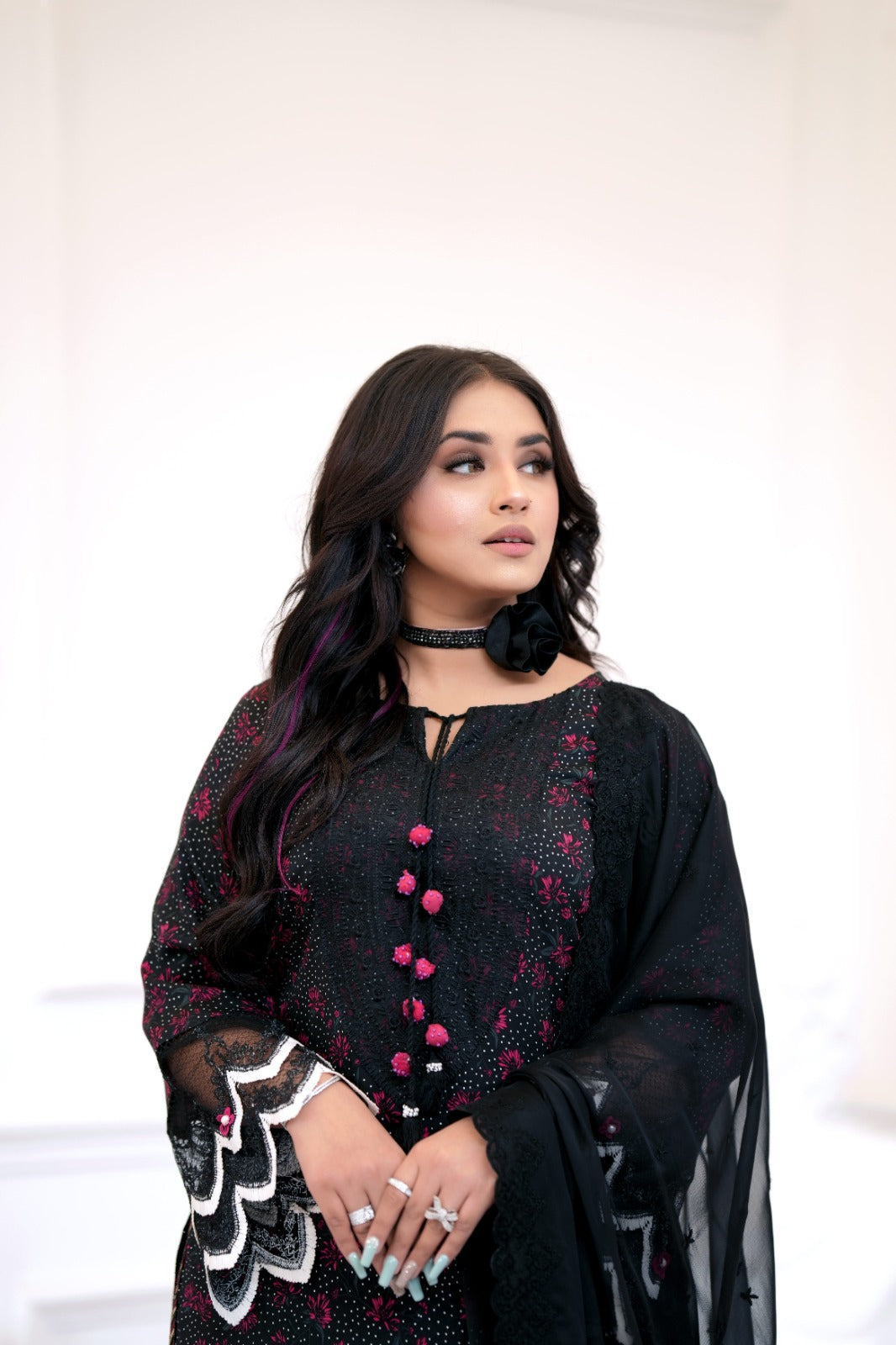 The Noir Classic Black Designer Dress is a perfect fusion of modern charm and traditional elegance. With delicate embellishments and a refined silhouette, it elevates your style effortlessly. Ideal for semi-formal functions, evening events, and festive celebrations.
