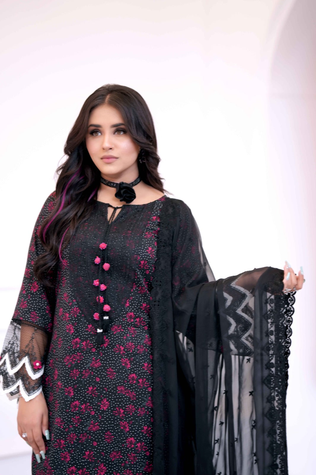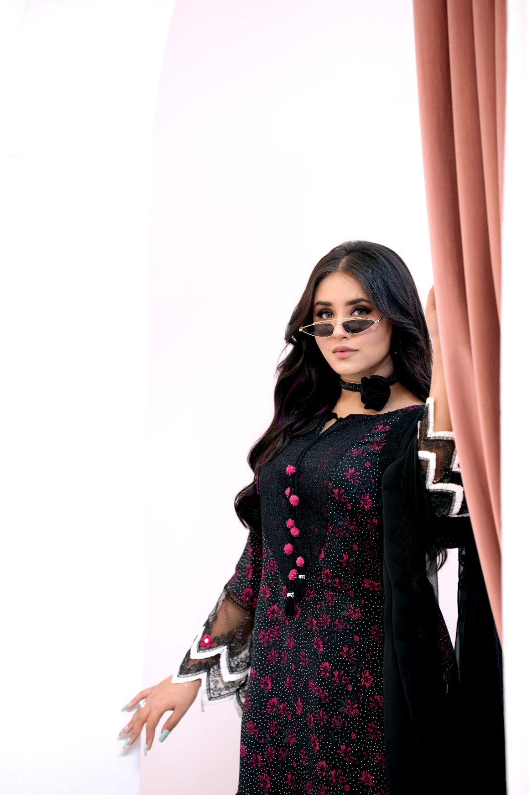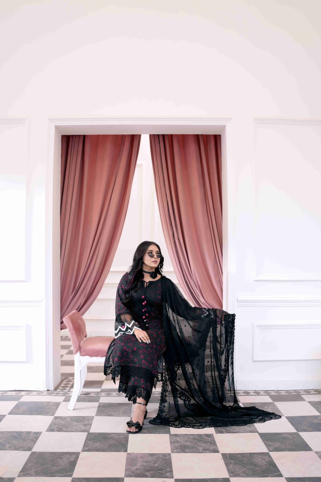The Noir Classic Black Designer Dress is a perfect fusion of modern charm and traditional elegance. With delicate embellishments and a refined silhouette, it elevates your style effortlessly. Ideal for semi-formal functions, evening events, and festive celebrations.